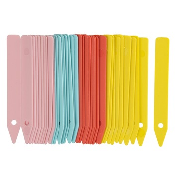 Deze 40-delige Nature-steeketikettenset bevat kunststof steeketiketten in 4 trendy kleuren: blauw, geel, roze en rood. Van iedere kleur zitten er 10 etiketten in de set. De steeketiketten zijn een handig hulpmiddel om zaailingen en stekken te labelen. Op de steeketiketten schrijft u met behulp van een stift of potlood de naam van de plant die u hebt gezaaid, zodat duidelijk is waar in uw tuin bepaalde planten of bloemen groeien. De steeketiketten uit deze 40-delige set zijn voorgeperforeerd, zodat u ze rechtstreeks aan de plant vastmaakt. De steeketiketten uit de set van Nature zijn 10cm lang en verpakt per 40 stuks.