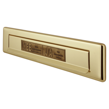 De bekende NEE-JA sticker, maar dan in een stijlvol design. Met deze nee/ ja sticker messing kleur op de brievenbus ontvang je geen ongeadresseerde reclame en folders meer, maar wel nog huis-aan-huisbladen.