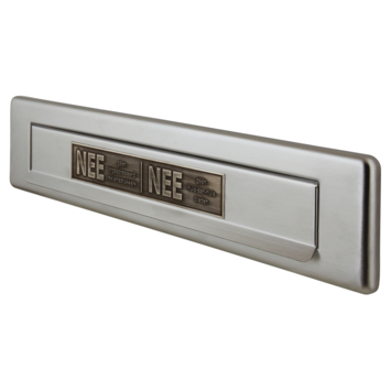 De bekende NEE-NEE sticker, maar dan in een stijlvol design. Met deze nee/ nee sticker tin kleur op de brievenbus ontvang je geen ongeadresseerde reclame, folders en huis-aan-huisbladen meer.