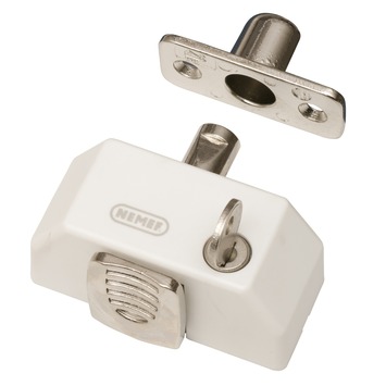 Wil je jouw (houten) draairamen, schuifpuien, klepramen of ramen die boven je buitendeur zitten goed beveiligen? Kies dan voor het Nemef bijzetslot SKG* 2566/1 witte afdekkap 2 stuks. Deze witte druksluiting sluit je af met een sleutel en is voorzien van een het keurmerk van SKG* (Stichting Kwaliteit Gevelbouw), wat de mogelijkheid op een inbraak vermindert. Het voordeel van dit bijzetslot is dat je het artikel snel monteert aan zowel de linker- als rechterkant van het raam en is eenvoudig te bedien. Bovendien worden de sloten per twee stuks geleverd en zijn ze gelijksluitend, wat inhoudt dat je maar één sleutel nodig hebt om beide sloten te openen. De witte kleur van het slot zorgt ervoor dat het slot niet goed opvalt op je houten kozijnen. Kortom: dit bijzetslot is de eerste stap naar inbraakpreventie.