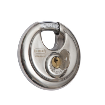 Discussloten zijn de welbekende ronde sloten waarvan de beugel grotendeels in de behuizing zit opgeborgen. Het Nemef discusslot RVS np1133-70mm is gemaakt van roestvaststaal (RVS) en daarom zeer sterk en goed beschermd tegen roest. Dit hangslot heeft een dubbele vergrendeling, wat inhoudt dat de beugel aan beide kanten een inkeping heeft en daarom nog lastiger te forceren. Dit product wordt verkocht met twee sleutels, zodat je altijd een extra sleutel achter de hand hebt. Kortom: dit slot is niet makkelijk open te breken.