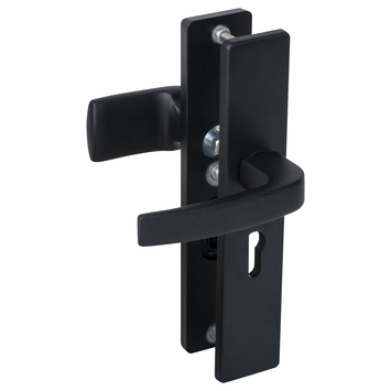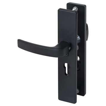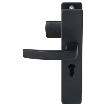 Solid handle for my front door. Looks very modern and sleek in the matte black. Cover plate for the cylinder was a big selling point for me. Love the look but most importantly the security it offers. Very happy customer!