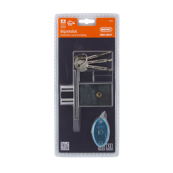 Wil je jouw deur beveiligen met een extra slot? Ga dan voor Nemef veiligheidsbijzetslot SKG* 1008. Dit slot is voorzien van het keurmerk van SKG* (Stichting Kwaliteit Gevelbouw) en hierdoor veilig. Dit bijzetslot gebruik je op deuren in combinatie met een bestaand oplegslot - een slot dat op de deur is bevestigd en niet erin - en wordt hierdoor extra beveiligd. Het slot bestaat uit twee penschoten en is uitgevoerd in vernikkeld staal, wat het sterk maakt en goed bestand tegen roest. Kortom: met dit veiligheidsbijzetslot sluit je inbraak zoveel mogelijk uit.