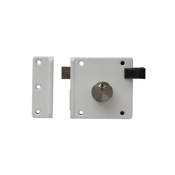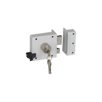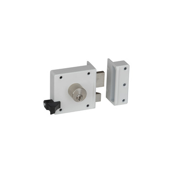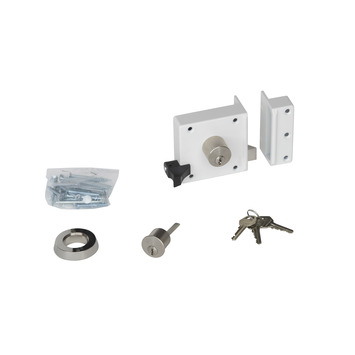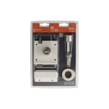 Zoals de naam al doet vermoeden, maak je een opzetslot vast op de binnenzijde van je buitendeur en niet in de deur. Dit Nemef oplegslot SKG** 4154 rechts wit gelakt heeft een doornmaat - maat vanaf de voorkant van de voorplaat tot het midden van het cilindergat - van 50mm en is voorzien van het keurmerk van SKG** (Stichting Kwaliteit Gevelbouw) en hierdoor extra veilig. Het slot is bedoeld voor de rechterkant van je deur en zolang deze tussen de 38mm en 42mm dik is, past dit oplegslot in principe op iedere deur. Het oplegslot wordt compleet geleverd met een sluitkast (het deel dat je in het kozijn monteert), cilinder en veiligheidsrozet, zodat je hem eenvoudig zelf kunt monteren. Kortom: met dit oplegslot komen inbrekers niet zo makkelijk bij je binnen.