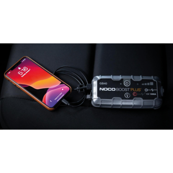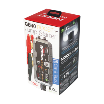 1000 ampère jumpstarter voor 12 Volt Wet, Gel, MF, EFB en AGM accu’s. De Noco Genius GB40 is niet geschikt voor lithium accu's. Veilige vonkvrije verbinding en bescherming tegen omgekeerde polariteit. Voeding voor het opladen van USB apparaten en LED-zaklamp met meerdere functies.