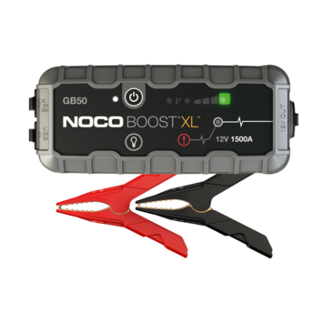 Noco Lithium Jump Starter Boost XL GB50 1500 ampère jumpstarter voor lithium-ion accu’s. Veilige vonkvrije verbinding en bescherming tegen omgekeerde polariteit. Voedingen voor het opladen van 12V en USB apparaten en LED-zaklamp met meerdere functies.