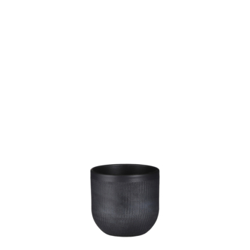 Zwarte terracotta bloempot met een natuurlijke textuur. De bloempot voor binnen is 13 cm hoog en heeft een diameter van 14 cm.