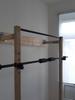 Ik had een sterke brug nodig om een motorfiets in te hangen: met 4 T-stukken en 3 lengtes steigerbuis was dat snel gefikst.