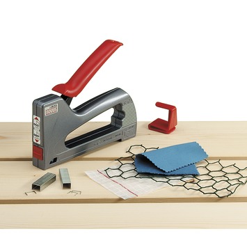 De Novus handtacker J09 XX SB is een kleine professionele tacker met een duurzame, terugslagvrije behuizing van spuitgietzink. De kleine tacker is geschikt voor diverse werkzaamheden in en om het huis, voor doe-het-zelf en op de werkplaats. Bovendien is de tacker uitgerust met greepvergrendeling, een nieten kijkvenster en riemhanger. Kortom, met deze tacker bent u goed uitgerust voor uw kluswerk.