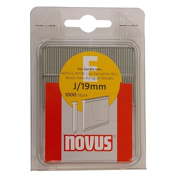 Novus nagels (brads) EJ 19mm SB zijn stevige spijkers met een smalle kop. De subtiele spijkers zijn optimaal geschikt voor het subtiel ophangen of bevestigen van diverse interieuraccessoires, waaronder sierlijsten en hoeklijsten. Verpakt per 1000 stuks.