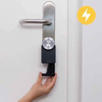 - Altijd inzicht in batterijstatus – ontvang meldingen via de Nuki-app zodra het batterijniveau onder de 20% komt.