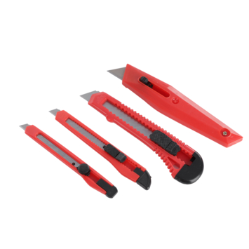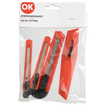 De OK afbreekmessen zijn gemaakt uit een combinatie van kunststof en metaal, waardoor het licht en comfortabel in de hand ligt. Deze set bestaat uit 4 messen om diversen materialen te snijden.