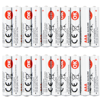 OK Batterij Alkaline AAA 20 stuks, ook bekend als LR03, MN2400, AM4, micro batterij, potlood batterij. Deze batterijen hebben een langere levensduur en zijn geschikt voor verschillende toepassingen zoals fotocamera's, zaklampen, afstandsbedieningen en speelgoed. In één verpakking zitten 20 AAA batterijen.