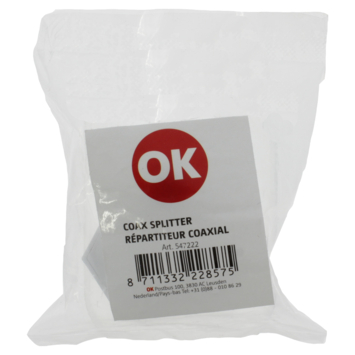 Jouw antennesignaal splitsen? Met de tv-splitter van OK splits je het tv-signaal, zodat u 2 televisies op slechts 1 aansluitpunt aansluit. Je sluit de splitter direct aan op een coaxaansluitpunt. Hierdoor blijft het antennesignaal voor beide op de splitter aangesloten televisies optimaal.