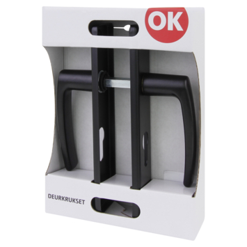 OK deurkruk set Blok recht schild profielcilindergat 55 mm zwart aluminium