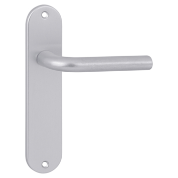 Deurkruk. Type Ovaal aluminium naturel , op kortschild blind (zonder sleutelgat). Deze deurklink is vast gemonteerd op het schild. Dus nooit meer de kruk los in je handen. In de serie Ovaal zijn ook sets t.b.v. WC, sleutel en cilinder sloten beschikbaar.