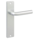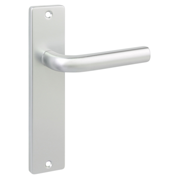 Deurkruk. Type Recht aluminium naturel , op kortschild blind (zonder sleutelgat). Deze deurklink is vast gemonteerd op het schild. Dus nooit meer de kruk los in je handen. In deze serie zijn ook de WC63/8,sleutel 56mm en cilinder 55mm beschikbaar.