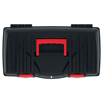 OK gereedschapskoffer met twee handige rode sluitingen.