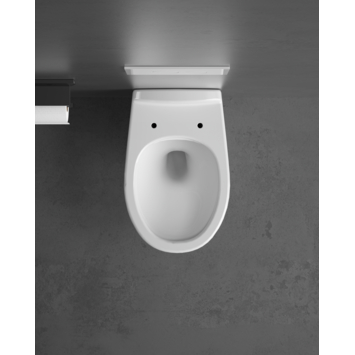 Spoelt redelijk goed door, wel niet de stilste. De middelste jets zijn gericht op het water, waardoor de achterkant niet altijd schoon gespoeld wordt en de borstel nodig is. Het porselein is niet verstevigd waar de pot opgehangen wordt, dus de bevestigingsbouten niet te hard aanspannen.