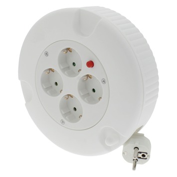 Met deze handige kabelbox van OK rolt u uw verlengsnoer makkelijk en net op. Zodoende voorkomt u dat u struikelt over verlengsnoeren en laat u de werkplek opgeruimd achter. De witte haspel heeft een vaste kern met 4 contactdozen en is 5 meter lang. Dit maakt de kabelbox met een dikte van 3x1mm2 geschikt voor thuisgebruik. Dankzij de kabelbox van OK raken snoeren en kabels niet in de war en bergt u ze na afloop van de werkzaamheden makkelijk op.