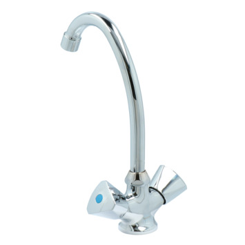 De OK kranen vormen ons basis assortiment. Alle kranen uit deze serie zijn chroom afgewerkt. Deze OK Keukenkraan 2-knops Chroom is voorzien van een tweeknops bediening, waarmee de watertoevoer op een gemakkelijke wijze kan worden bediend. De kraan wordt geleverd met bijbehorend aansluitmateriaal en 2 jaar garantie.