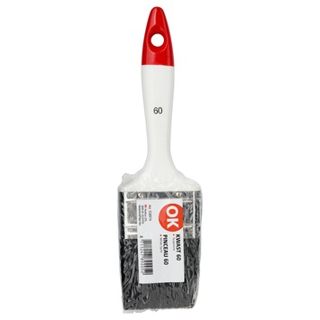 De OK kwast plat voor terpentinegedragen verf maat 60 is een platte kwast met natuurlijk haar die geschikt is voor verf op terpentinebasis. De kwast is 60 millimeter breed en daardoor handig voor grotere oppervlakken zoals deuren of panelen. Je gebruikt deze kwast op gladde en ruwe ondergronden zoals multiplex of gips. De natuurlijke haren nemen verf goed op en zorgen voor een gelijkmatige afgifte wat prettig werkt bij muurverf op terpentinebasis. Deze kwast heeft een rode uitvoering die laat zien dat hij bedoeld is voor verf op terpentinebasis.