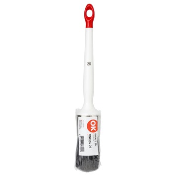 De OK kwast rond voor terpentinegedragen verf maat 20 is een ronde kwast met natuurlijk haar die je gebruikt voor verf op terpentinebasis. De kwast is 20 millimeter breed en daardoor geschikt voor middelgrote oppervlakken. Je gebruikt hem op gladde en ruwe ondergronden zoals multiplex of gips. De natuurlijke haren nemen de verf goed op en geven het gelijkmatig af wat handig is bij het aanbrengen van lak. De steel is van kunststof en daardoor goed bestand tegen vocht. Deze kwast herken je aan de rode kleur die aangeeft dat hij bedoeld is voor verf op terpentinebasis.