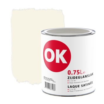 OK lak crème wit zijdeglans 750 ml is een lak op terpentinebasis. Deze zijdeglans lak is in combinatie met de juiste grondverf geschikt voor op hout, voorbewerkt metaal en harde kunststoffen voor zowel binnenshuis als buitenshuis. Lichte kleuren kunnen naar verloop van tijd geel worden op plaatsen die niet veel in contact komen met daglicht. Voor deze plaatsen kunt u het beste een lak op waterbasis gebruiken. De inhoudsmaat van 750 ml volstaat voor het schilderen van een oppervlakte van ongeveer 12 m2.
