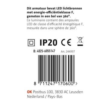 Deze OK LED TL-armatuur heeft een lengte van 60 cm en de LED-lamp heeft een vermogen van 9 watt. De LED-lamp produceert 900 lumen met een kleurtemperatuur van 4000 kelvin wat zorgt voor natuurlijk wit licht. Het armatuur heeft een beschermingsgraad van IP-20 wat betekent dat deze geschikt is voor het gebruik in een binnen ruimte, zoals een kelder of bijkeuken.