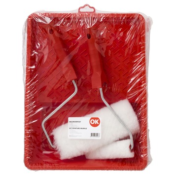 De OK muurverfset 10 cm en 18 cm (5-delig) is een complete set voor het schilderen van muren en plafonds met verf op waterbasis. De set bestaat uit twee rollers, één van 10 en één van 18 centimeter, allebei met beugel, en een verfbak. Je gebruikt deze rollers op gladde of licht ruwe ondergronden zoals pleister of beton.