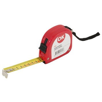 Met de OK rolbandmaat van 5meter meet u zowel buitenwerkse als binnenwerkse maten. De geijkte rolmaat is voorzien van een blokkeerknop. Hiermee zet u de maatband eenvoudig vast op de gewenste meetafstand tot maximaal 5meter. Wanneer u klaar bent met opmeten zorgt de krachtige veer van de rolbandmaat ervoor dat de band weer netjes wordt opgerold. Dit oprollen gebeurt in de kunststof kast die schokbestendig is. Tevens is de rolmeter, of rolcentimeter, voorzien van een broekclip en draagbandje. Met behulp van de handige clip en/of het draagbandje bevestigt u het meetgereedschap eenvoudig aan uw broek, jas of broekriem. Zo heeft u de rolbandmaat van OK met een totale lengte van 5meter altijd direct bij de hand. Op zoek naar een andere rolbandmaat? Bekijk GAMMA’s assortiment met daarin diverse rolbandmaten met verschillende lengtes.