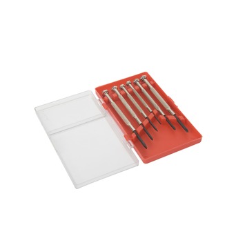 De OK schroevendraaierset PH-SL bevat 6 stuks schroevendraaiers. Om precies te zijn horlogeschroevendraaiers. Dit zijn schroevendraaiers voor het fijnere werk. Met de schroevendraaiers uit deze 6-delige set voert u precisiewerk uit, zoals het aandraaien van brilmonturen. De schroevendraaierset bevat 4 platte schroevendraaiers, oftewel sleufkopschroevendraaiers, van 1,4mm tot 2,10mm en 2 kruiskopschroevendraaiers, namelijk PH0 en PH1. Deze worden ook wel Phillips-schroevendraaier genoemd. Is deze complete set schroevendraaiers voor precisiewerk voor u niet volledig? In GAMMA?s assortiment vindt u tevens andere sets met precisieschroevendraaiers.