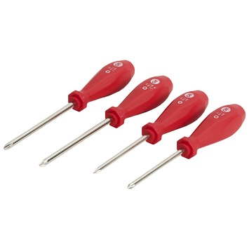 De OK-schroevendraaierset PH-PZ bestaat uit 4 stevige schroevendraaiers, gemaakt van chroom-vanadiumstaal. De 4-delige set met schroevendraaiers is geschikt voor Phillips-kruiskopschroeven met maat PH1 en PH2 en Pozidriv-kruiskopschroeven met maat PZ1 en PZ2. De 4-delige set bestaat dan ook uit een Phillips-1-kruiskopschroevendraaier, een Phillips-2-kruiskopschroevendraaier, een Pozidriv-1-kruiskopschroevendraaier en een Pozidriv-2-kruiskopschroevendraaier. De 4 PH- en PZ-schroevendraaiers uit deze set hebben kunststof handgrepen waarmee de schroevendraaiers makkelijk te hanteren zijn. Bekijk GAMMA’s assortiment wanneer u op zoek bent naar een andere schroevendraaierset.