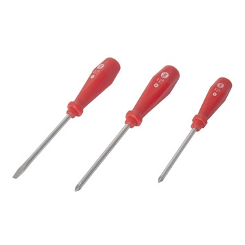 De 3-delige OK-schroevendraaierset sleuf-Phillips bestaat uit 3 stevige schroevendraaiers, gemaakt van chroom-vanadiumstaal. De 3 schroevendraaiers zijn geschikt voor Phillips-kruiskopschroeven met maat PH1 en PH2 en sleufkopschroeven. De 3-delige set bestaat dan ook uit een Phillips-1-kruiskopschroevendraaier, een Phillips-2-kruiskopschroevendraaier en een sleufkopschroevendraaier. Deze schroevendraaier voor sleufkopschroeven heeft een afmeting van 100mm bij 6mm. De 3 schroevendraaiers uit deze set, zowel de schroevendraaier met platte kop als de schroevendraaiers met Phillips-kruiskoppen, hebben kunststof handgrepen waarmee de schroevendraaiers makkelijk te hanteren zijn. Bekijk GAMMA?s assortiment wanneer u op zoek bent naar een andere schroevendraaierset.
