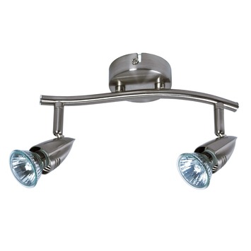 De voordelige OK spot 2-lichts is een eenvoudige duospot die je gemakkelijk kunt plaatsen in diverse ruimtes van jouw huis. De spots kun je door het draaibare mechanisme zelf afstellen waardoor deze lamp dus geschikt is als accentverlichting. De duospot heeft een strakke vormgeving in een geborsteld stalen afwerking. Hierdoor past hij mooi in elk modern interieur. De spots zijn voorzien van een GU10 fitting en zijn geschikt voor een lichtbron met een maximaal wattage van 50 watt. Door de spots te combineren met een LED- verlichtingsbron bespaar je ook nog op je energierekening. Kortom, de OK duospot is een prettige accentverlichting.