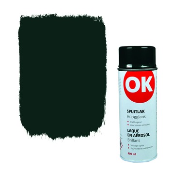 OK spuitlak groen hoogglans is een sneldrogende alkyd lak voor ondergronden van hout, metaal, aluminium, glas, steen en diverse soorten kunststof. Ideaal voor moeilijk te schilderen oppervlakken zoals buizen, rotan en spijlen. Voor een optimale hechting wordt aangeraden vooraf OK spuitlak primer aan te brengen. Deze spuitlak is zowel binnen als buiten te gebruiken. Eén spuitbus van 400 ml volstaat voor het spuiten van een oppervlakte van 1,5 tot 2 m2. Stofdroog na 15 minuten.