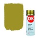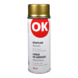 OK spuitlak goud metallic is een sneldrogende lak voor ondergronden van hout, metaal, aluminium, glas, steen en diverse soorten kunststof. Ideaal voor moeilijk te schilderen oppervlakken zoals buizen, rotan en spijlen.Voor een optimale hechting wordt aangeraden vooraf OK spuitlak primer wit aan te brengen. Het metallic effect wordt versterkt door het aanbrengen van een aflaklaag alkyd blanke lak. Deze spuitlak is zowel binnen als buiten te gebruiken. Eén spuitbus van 400 ml volstaat voor het spuiten van een oppervlakte van 1,5 tot 2 m2. Stofdroog na 15 minuten.