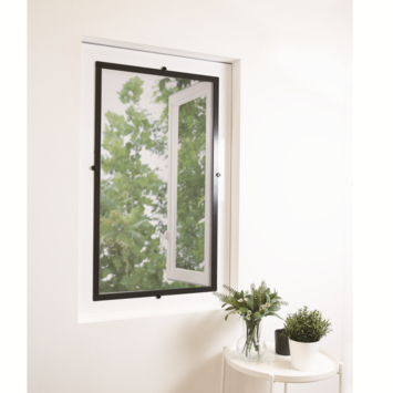 De OK vaste raamhor is een complete set waarmee u uit antraciet aluminium profielen en gaas een vaste hor kunt maken. U kunt kiezen voor een raamhor die u in uw kozijn of die u scharnierend op uw kozijn bevestigt. Geschikt voor naar binnen en naar buiten draaiende ramen.