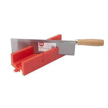 De OK-verstekbakset met toffelzaag bestaat uit een kunststof verstekbak en bijbehorende toffelzaag. De verstekbakset is onmisbaar wanneer u precisiewerk moet zagen, bijvoorbeeld lijstwerk, plinten en profielen. De speciale toffelzaag van de verstekbakset heeft een fijne, geharde vertanding, ideaal voor het zagen van hout. Wilt u graag comfortabel werken? Zet de verstekbak dan met behulp van een GAMMA-lijmklem stevig vast op de werktafel. Op die manier maakt u met de OK-verstekbakset, inclusief toffelzaag, mooi en nauwkeurig houtwerk.