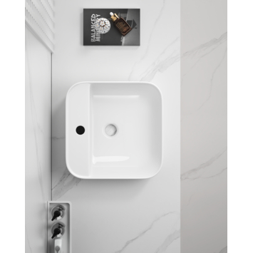 De OK waskom heeft een tijdloze uitstraling door het vierkantig ontwerp met afgeronde hoeken (37x37x12 cm) en uitvoering in wit keramiek. Deze waskom heeft een scherpe prijs-kwaliteit verhouding. In de wastafel bevindt zich een overloopbeveiliging waardoor je zeker weet dat het water nooit over de rand komt. Aan de kant waar de wastafel bevestigd wordt is een kraangat te vinden, waar je zelf een kraan naar keuze voor kunt kopen.