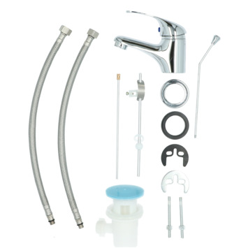 De OK kranen vormen ons basis assortiment. Alle kranen uit deze serie zijn chroom afgewerkt. Deze OK Wastafelkraan met Hendel en Waste Chroom is voorzien van keramische schijven en een waste. Met deze voorziening kun je, d.m.v. een hendeltje aan de achterzijde van de kraan, gemakkelijk je afvoerplug openen en sluiten. Deze bijbehorende afvoerplug wordt meegeleverd. De kraan wordt geleverd met bijbehorend aansluitmateriaal en 2 jaar garantie.