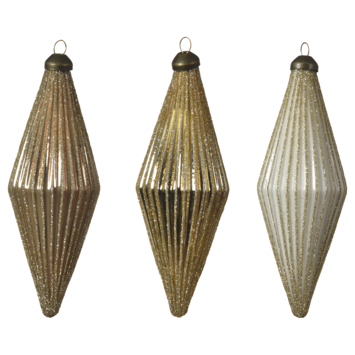 Geef je boom een feestelijke touch door deze pegels er aan toe te voegen. Deze pegels zijn prachtig gedecoreerd aan de buitenzijde met mooie glitters waardoor deze een luxe uitstraling krijgen. Deze boomdecoratie komt met een hanger, zodat je meteen kunt starten met decoreren. Verkrijgbaar in 3 kleuren.