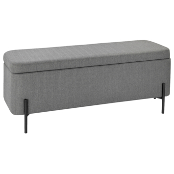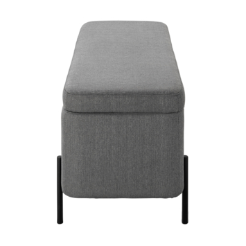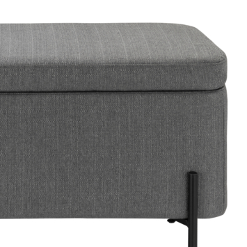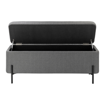 Opbergbank Xander gestoffeerd grijs is een rechthoekige, ruime grijskleurige opbergbank met 4 zwartkleurige metalen poten waar die op steunt, de opbergbank Xander is een klep. De opbergbank Xander is ideaal om je overige spullen in te zetten, voor kleren die je misschien even niet draagt, voor boeken die je ergens wilt opbergen,… De opbergbank Xander is 48 cm hoog, 4O cm diep en 120 cm breed. De zithoogte is 48cm, de zitdiepte is 48 cm, de zitbreedte is 40 cm en de hoogte van de poten is 12 cm.