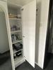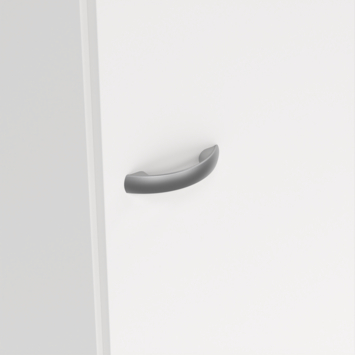 De kast is vervaardigd uit gelakt spaanplaat en heeft een witte kleur. Deze neutrale afwerking zorgt voor een rustige en frisse uitstraling die gemakkelijk aansluit bij andere meubels in huis.
