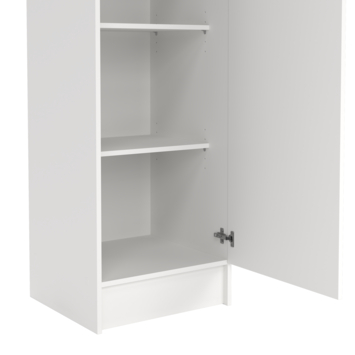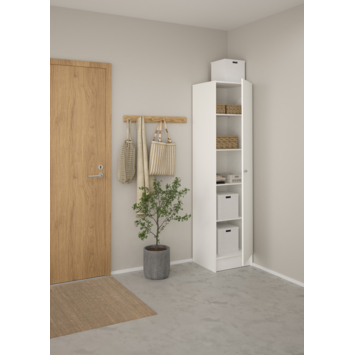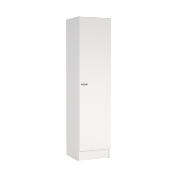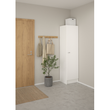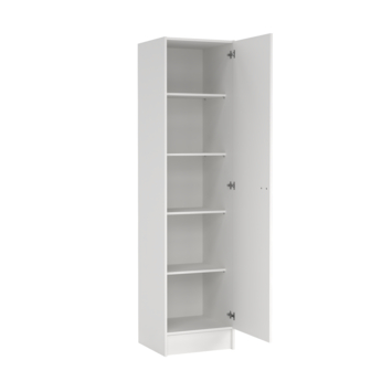 De opbergkast 1-deurs Cosmo wit hout 200 x 49,2 x 47,1 cm combineert een compacte afmeting met verrassend veel opbergruimte. Door de witte afwerking past de kast in vrijwel elk interieur en is hij ideaal voor gebruik in slaapkamer, logeerkamer of hal. Dankzij de slimme indeling is deze kast geschikt voor zowel kleding als accessoires.