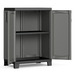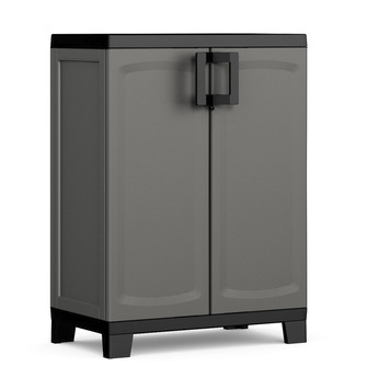 Met de Kis Opbergkast, kunststof, laag creëert u snel meer opbergruimte. De kast is voorzien van 2 antraciet kleurige legborden met zwarte accenten. De opbergkast heeft een afmeting van 90x65x45 (lxbxh) en biedt ruimte voor spullen als gereedschap, schoonmaakmiddelen, verfspullen, speelgoed, enz. Bovendien is de kast voor extra stabiliteit voorzien van 5 poten die u in hoogte kunt verstellen. De twee openslaande deuren kunt u indien gewenst voorzien van een hangslot (niet meegeleverd). Kortom, met deze praktische opbergkast kunt u eenvoudig uw spullen opbergen.