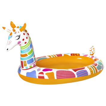 Vrolijk en kleurrijk zwembadje in de vorm van een giraf voor de kids. Uitermate geschikt voor de allerkleinsten vanaf 2 jaar.Het bad is aan te sluiten op een tuinslang.