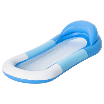 Met deze opblaasbare hangmat in de kleur lichtblauw kun je eindeloos genieten in het zwembad of de zee. Doordat de bodem van gaas is gemaakt ook heerlijk verkoelend én zeer makkelijk op te blazen. Afmetingen 160x84 cm