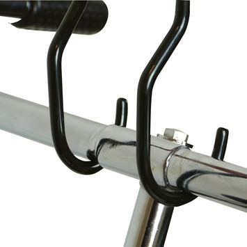 Met de ophanghaken kunt u voortaan uw fiets stallen door deze op te hangen. Doordat de fiets minder vaak op de grond staat, slijten de banden minder snel. Bovendien bespaart u ruimte, waardoor de fietshaken ideaal zijn voor gebruik in garages en schuren. De ophanghaken zijn gemaakt van metaal. Geleverd per 2 stuks.