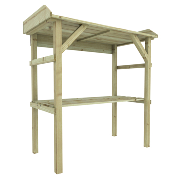 Deze tuinwerktafel is gemaakt van geïmpregneerd vurenhout, dat een goede basisbescherming biedt tegen weerselementen. De oppottafel Celeste van vurenhout kan gebruikt worden bij het poten van planten en andere tuinwerkzaamheden. Door de prettige hoogte is het gemakkelijk werken voor de echte tuinier. Daarnaast beschikt de tafel over een opbergruimte voor je tuingereedschap.